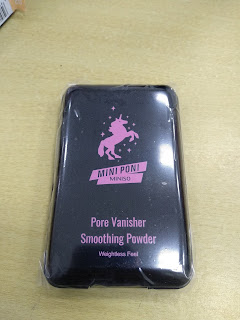 Terus pas liat ada tester2 gt, ak iseng tuh coba2in. Nah wkt ak liat ada bedak tempatnya item, gambarnya macem unicorn, cute banget. Trs aku cobain deh tu di tangan, ternyata kog oke juga loh hasilnya, pori2ku terlihat lebih kecil.